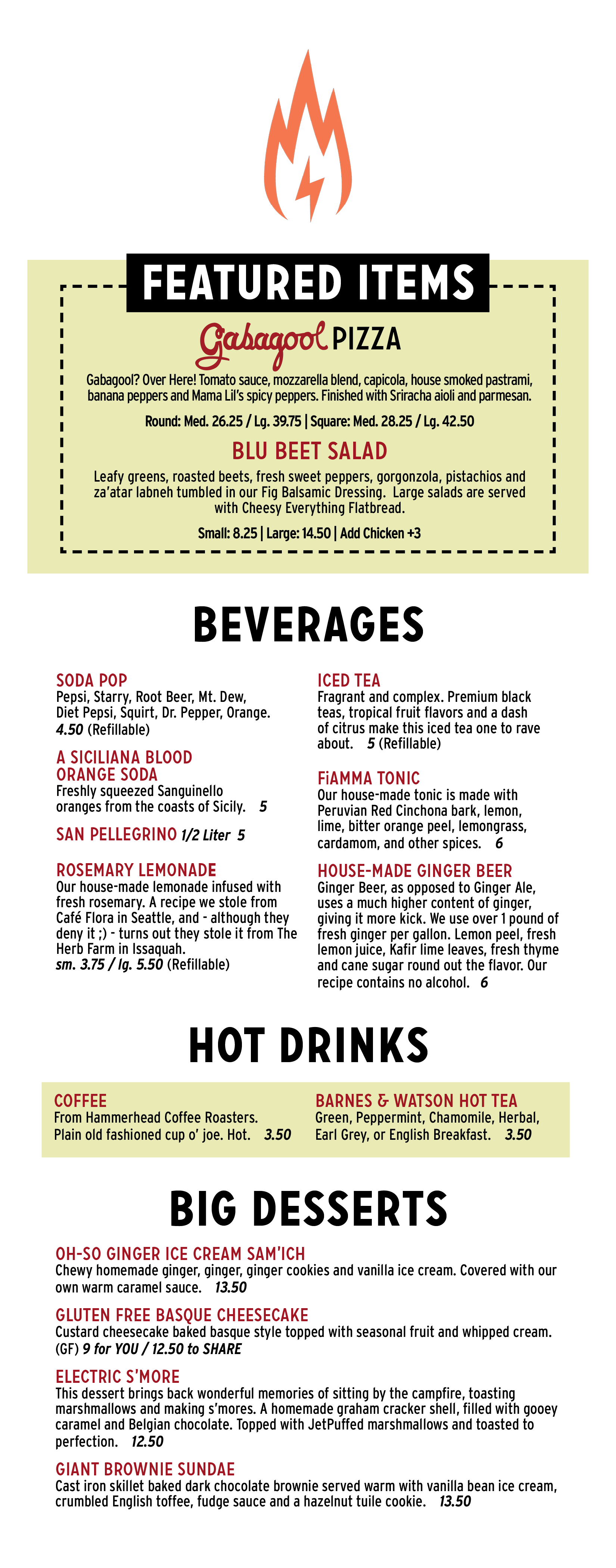 We love being creative and flexing our culinary muscle, whether it’s playing with fresh seasonal ingredients, or trying a mix of the exotics. Our specials aim to please–though not everyone will think so, if in doubt there’s always our famous pepperoni!!